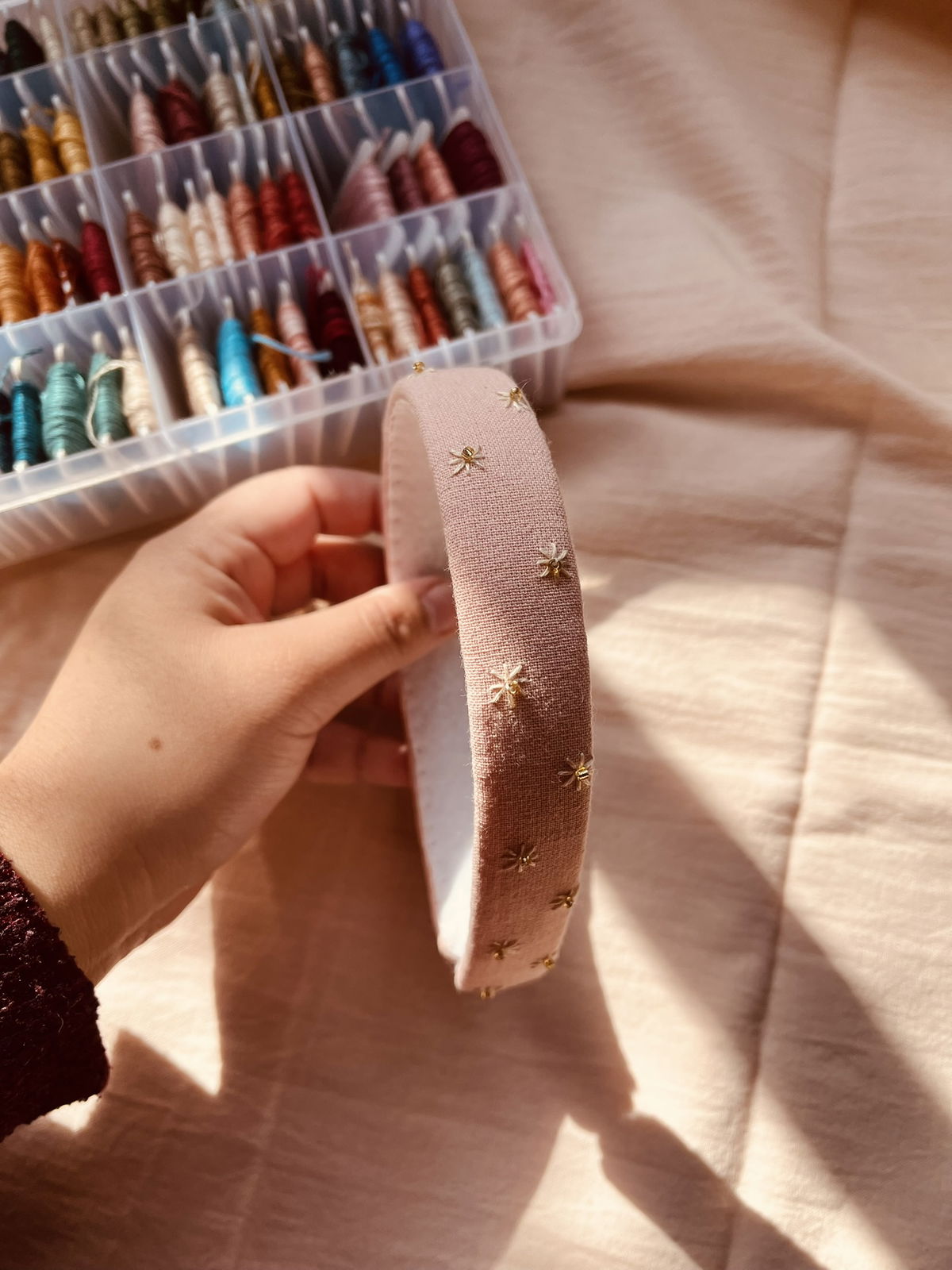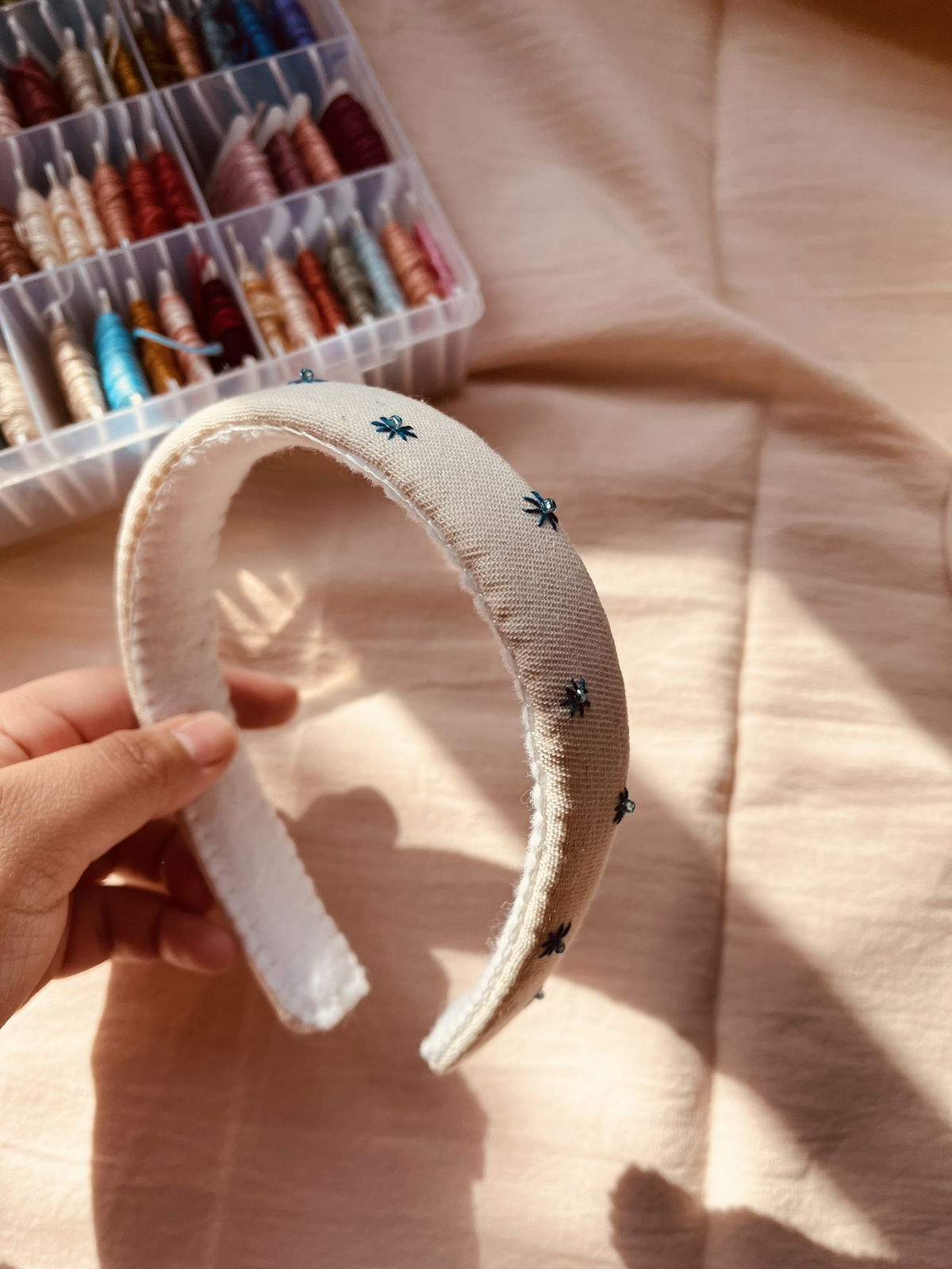 Este producto está hecho a mano, tanto el bordado como cosido. NO ESTÁ PEGADO