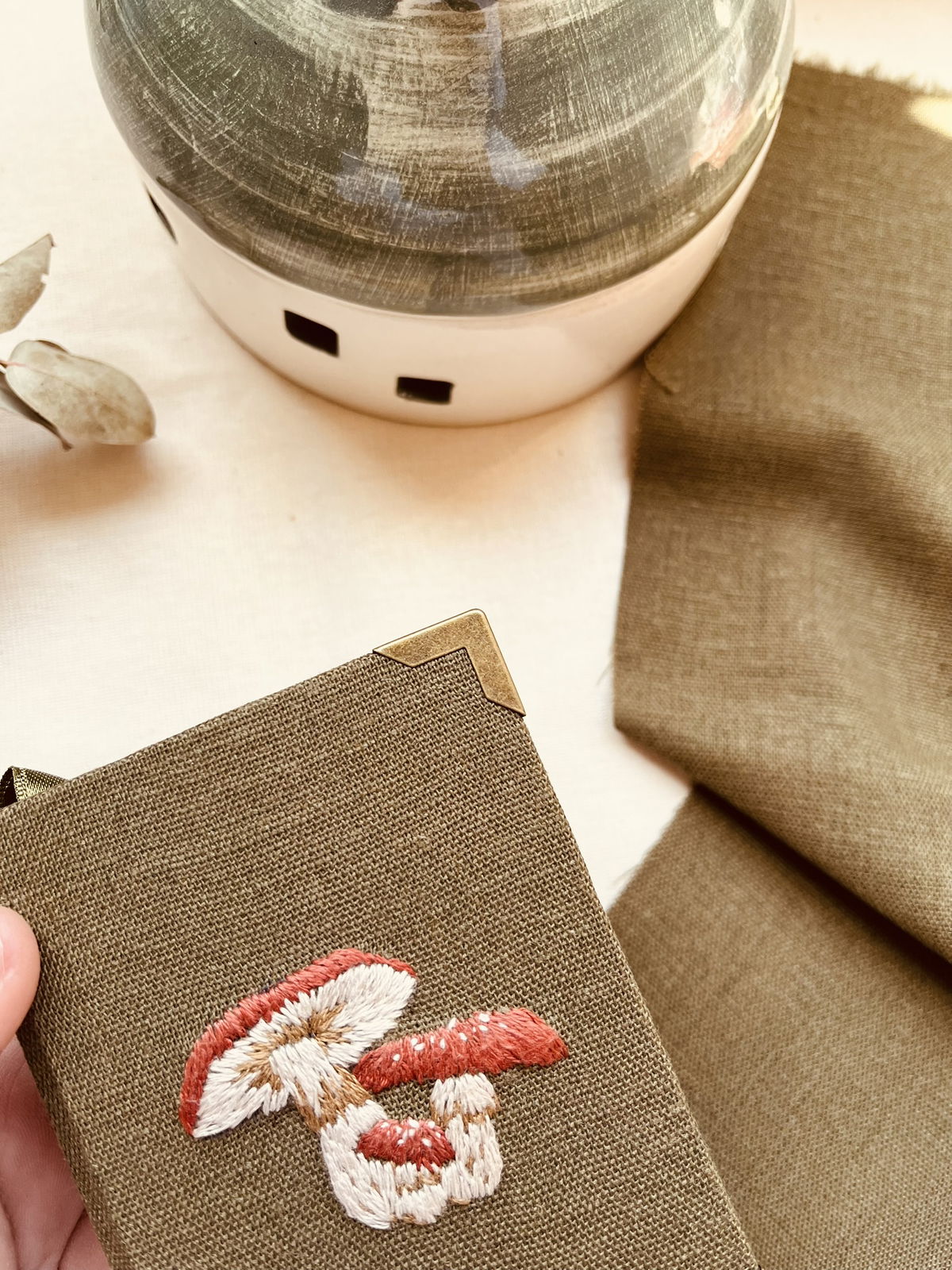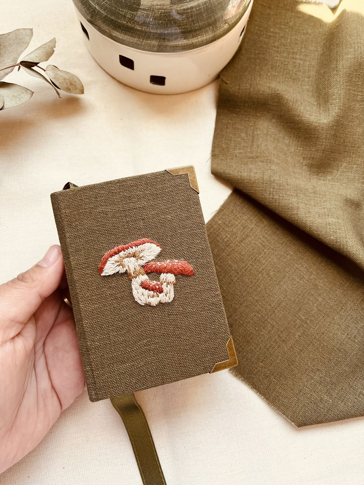 Este cuadernos fue bordado a mano sobre tela, hojas cosidas a mano y encuadernado de manera artesanal.